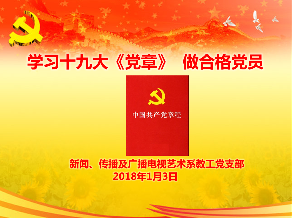 新闻、传播及广播电视艺术系教工党支部在东荣大厦10楼会议室进行十九大精神专题学习,由支部书记严俊教授为支部全体党员上了一堂题为《学习十九大〈党章〉 做合格党员》的党课。