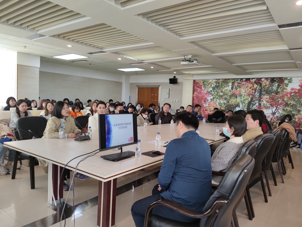 田雷老师凭借丰富的知识积累,旁征博引,生动形象地向我们展示了东北抗联时期红色报刊的历史风貌,带领我们认识到东北抗联报刊虽然接续创办,断续出版,刊期不定,发行有限,却仍在艰苦的媒介环境中发出了革命斗争的强音,谱写了逐日寇,复东北,光芒万丈有的豪迈诗篇。为教育引导广大党员深入开展党史学习,做到学史明理、学史增信、学史崇德、学史力行上了生动而又深刻的一课。