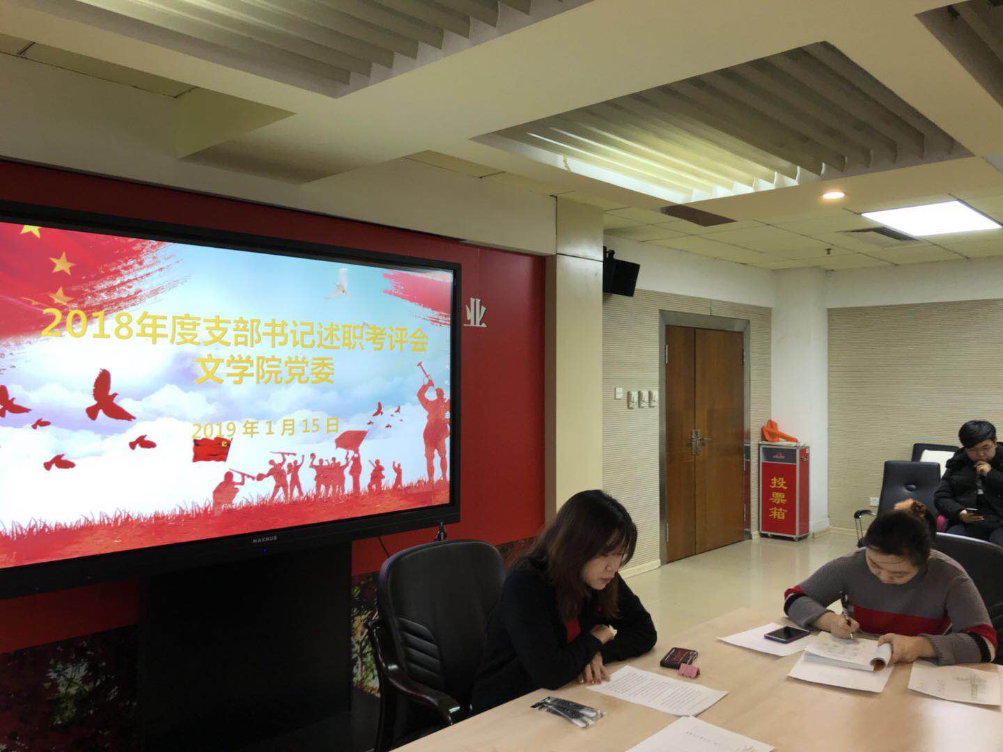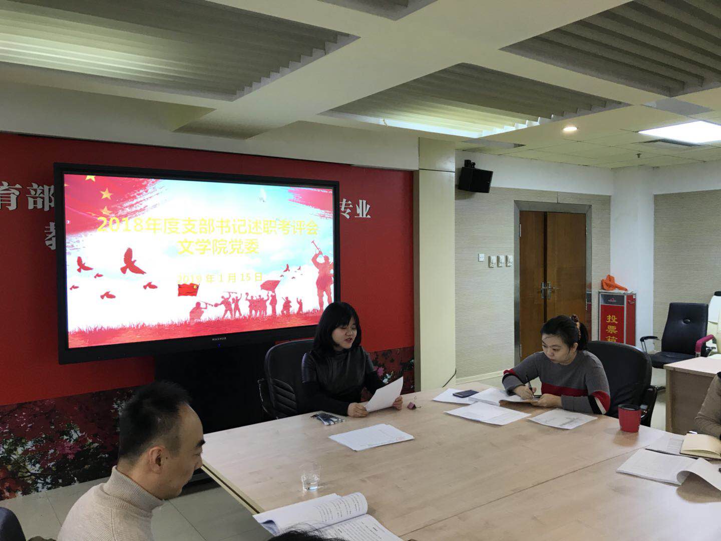 会上,党委委员对党支部书记进行了现场测评,同时党支部书记之间也进行了现场测评打分。