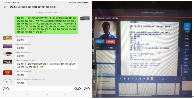 2019级人文科学试验班班主任李明晖老师在微信群中问候大家,李老师表示:“一个多月以来,大家都做到了听话不出门,这就是品行,这就是贡献。大家都能在家里读书学习,这就是素养,这就是尽责。关心每天发生的事,关心远方受苦的人,人同此心,必不可少。同样必不可少的,是在此时仍然关心一些更渺远的事。当疫情过去,世界已经改变,而你也已经改变,但那些恒久不变的,会因此更加清晰醒目,让人努力,让人爱,让人宽容。”2019级历史班班主任王万志老师表示,网课是一种无严格监督的学习形式,是否能有效,主要依赖学生自身的自觉性。应该秉持正常上课的端正态度。网课对学生和教师而言都是全新的授课方式,同学们对网络课堂有什么意见或想法,可以及时反馈给授课老师。也可以反馈给班长,由她汇总后转发给我,我帮大家去反映。疫情方面,我们的前景很乐观,但目前也不可放松警惕。所以同学们尽量减少出门,出门需戴口罩,勤洗手,注意卫生。同时,也要注意多运动,锻炼身体,提高抵抗力。2019级新闻与传播学类班主任王嘉悦老师、生琳老师表示,同学们要努力克服特殊时期的困难,照顾好家人,坚持网课的学习,安排好自己的生活。2月27号,刘洋老师利用超星学习通线上教学之机,在上午(80分钟)和下午(100分钟)分别对广播电视编导专业2018级和2019级135名同学进行了应对疫情考验的心理疏导、身体锻炼与学习规划的建议指导,反响很好,同学们都纷纷表达了乐观的愿景和极强的行动力。