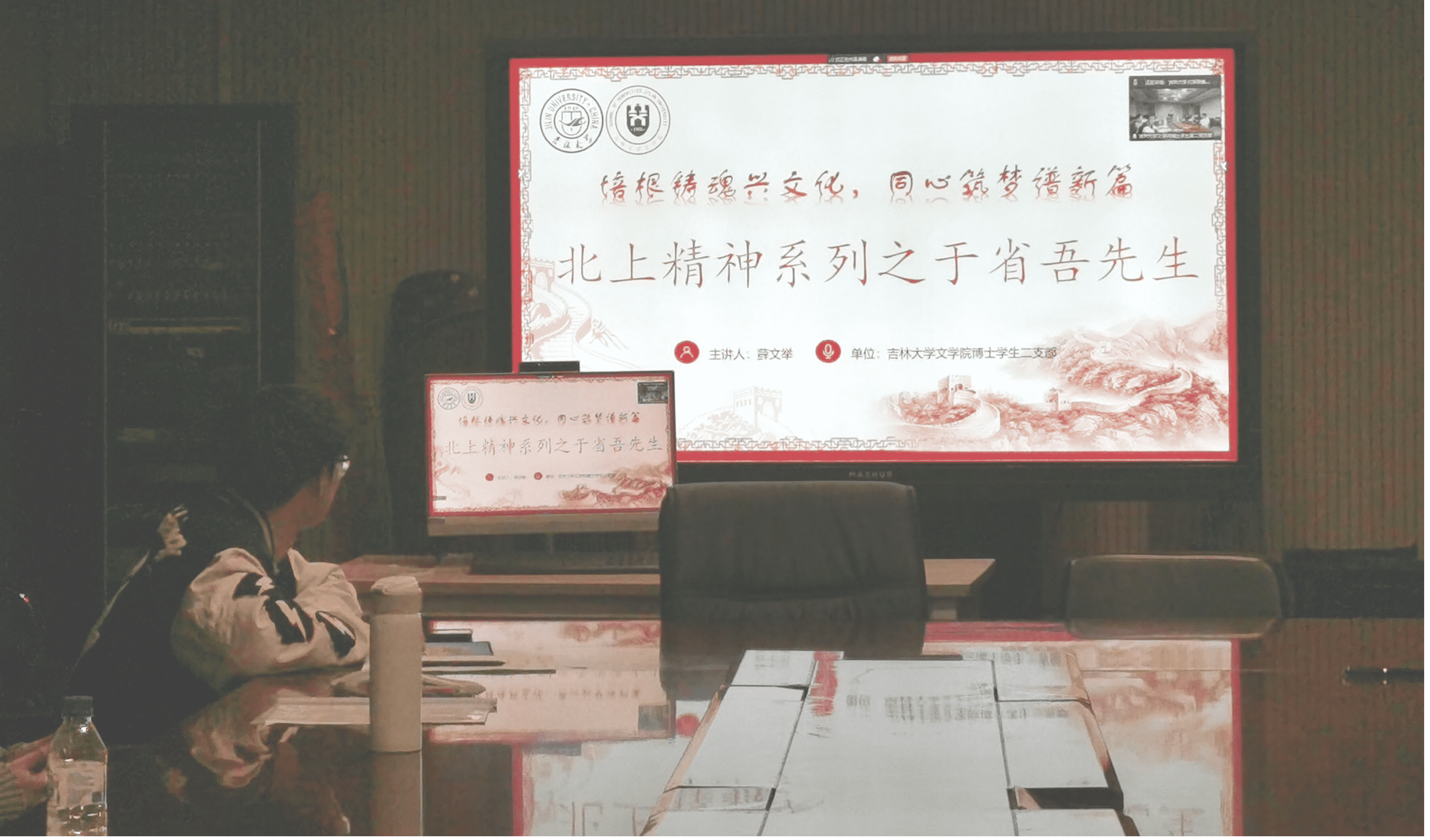博士学生第二支部,结合本校特色,以“北上精神”为核心,讲述了于省吾先生变卖家产搜集文物,和匡亚明先生三顾茅庐请于先生的故事。借助榜样的力量,带动党员同志们增强思想自觉,敢于担当,奋发有为,繁荣中国学术,发展中国理论,为实现第二个百年奋斗目标,实现中华民族伟大复兴的中国梦作出贡献。