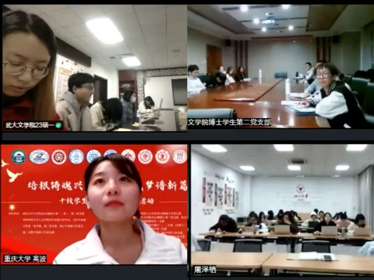 支部联合举办,并且以线上线下相结合的形式顺利开展。参加本次活动宣讲的还有重庆大学博雅学院研究生二支部、武汉大学博士生宣讲团和浙江大学黄色韩漫