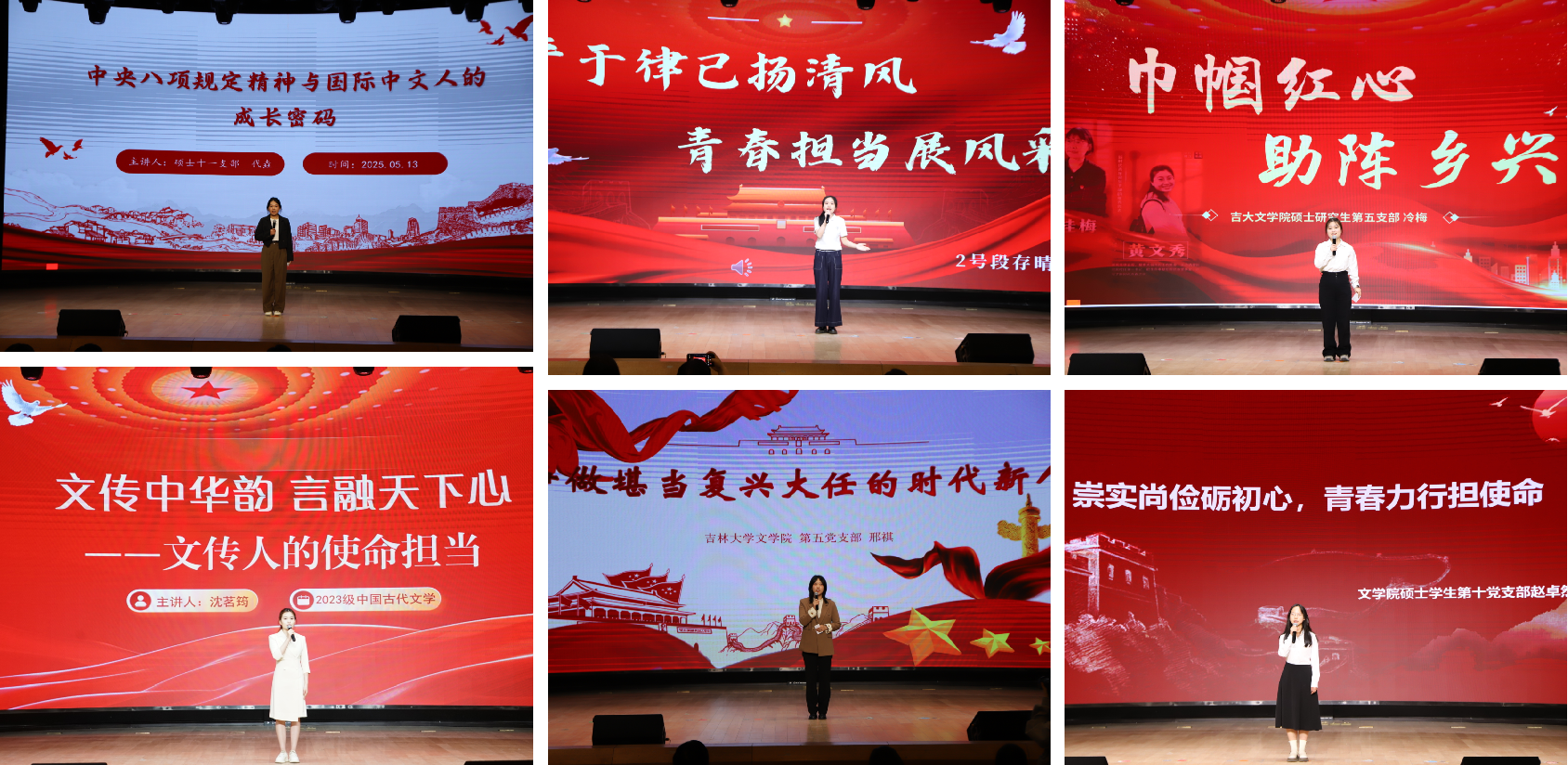 比赛过程中,6名选手为大家带来了精彩纷呈的微党课展示。选手们从“中央八项规定精神”微课堂的深刻解读,到“争做堪当复兴大任的时代新人”的激昂宣言;从“巾帼红心 助阵乡兴”的温暖实践,到“文传中华韵 言融天下心——文传人的使命担当”的文化坚守;从“崇实尚俭砺初心 青春力行担使命”的躬身践行,到“严于律己扬清风 青春担当展风采”的自我要求,用鲜活的案例、真挚的情感、创新的表达,将中央八项规定精神、青年的时代使命与学院的专业特色紧密融合,展现出黄色韩漫